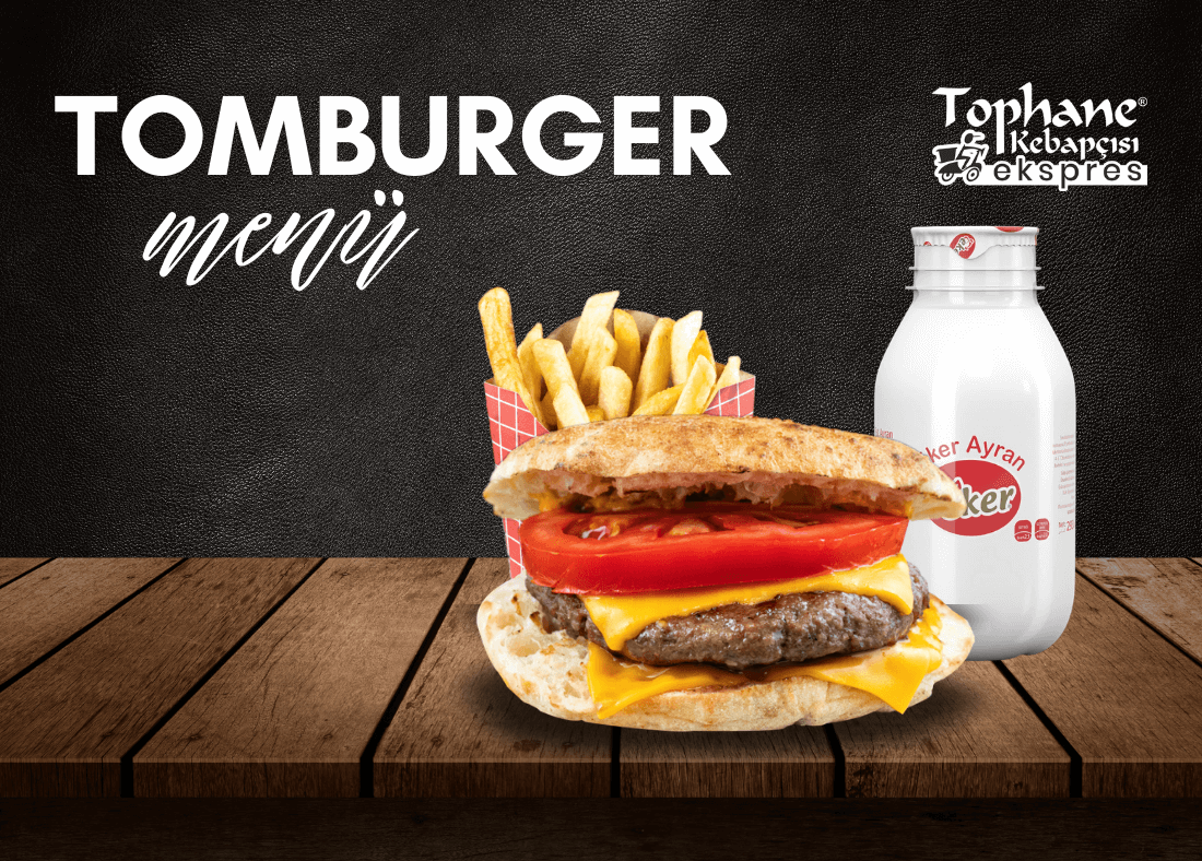 Tombik Ekmek arası Hamburger Köfte, Patates Kızartması, İçecek